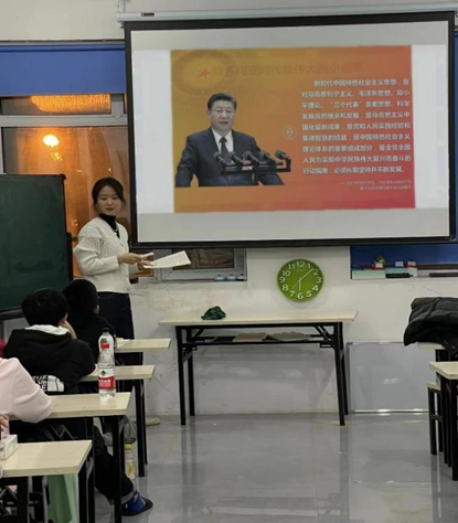 当天上午,宣讲成员为大学生讲解了《习近平与大学生朋友们》交往交流交心的感动小事。随后又讲述了习近平总书记深入基层一线,对青年学生寄语,给青年学生回信的精神。在习近平总书记对大学生们的每一声勉励中,每一次欣慰的微笑中,我们真真切切感受到他对青年特别是大学生始终如一的关注关心关爱。同为大学生的我们都深受感触,纷纷表示要肩负历史使命,坚定前进信心,立大志、明大德、成大才、担大任,努力成为堪当民族复兴重任的时代新人!